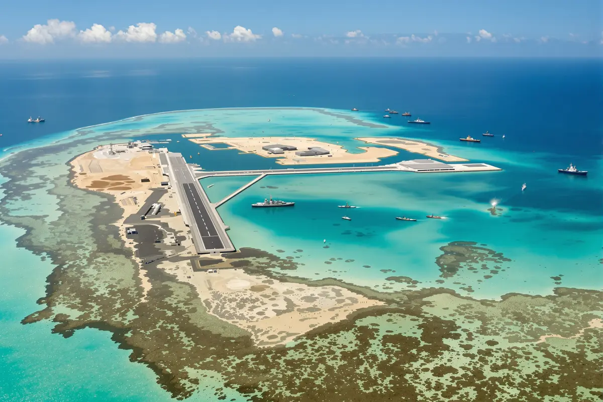 One dramatic example is Fiery Cross Reef. Back in 2012, it was barely visible at high tide. By 2015, it had a 3,000-meter runway, a protected harbor, and rows of aircraft hangars. The same pattern unfolded at Subi Reef and Mischief Reef, creating a chain of fortified platforms across the Spratly Islands.